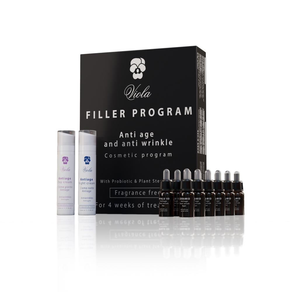 برنامج فيولا التجميلي المضاد لعلامات التقدم بالعمر مصمم لتقليل التجاعيد وتجديد البشرة باستخدام مزيج فعّال من البروبيوتيك والخلايا الجذعية النباتية.